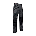 Tissu de renfort en 100 % polyester oxford 600D. Pantalon avec des parties extensibles dans les 2 sens. 2 poches latérales, 1 poche téléphone, 1 poche mètre, 2 poches cuisse, 2 poches stylos, 2 poches arrière et 2 poches genoux en renfort Oxford 600 D. Boucle ceinture avec porte-clés et ourlet à rallonge.